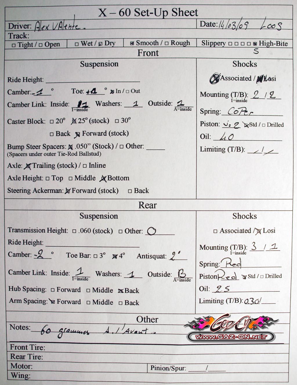 Truck - Fiche de réglages pour X-Factory X60 - Alexander VALENTE | date: 15/03/2009