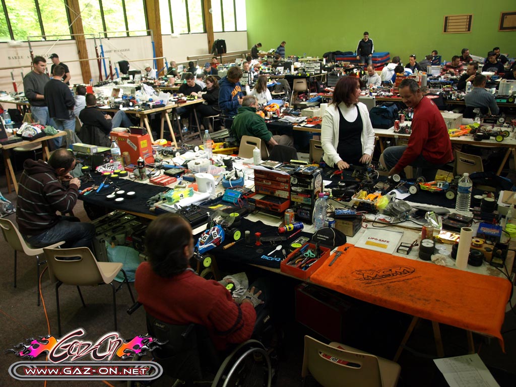 Les stands étaient installés dans le gymnase attenant à la piste, de grandes tables y étaient installées et l’espace par pilote était largement suffisant.En 4x2