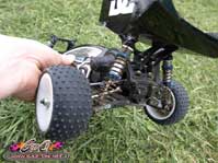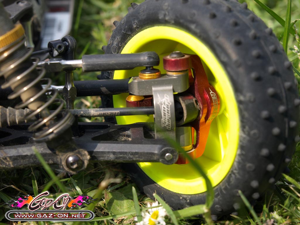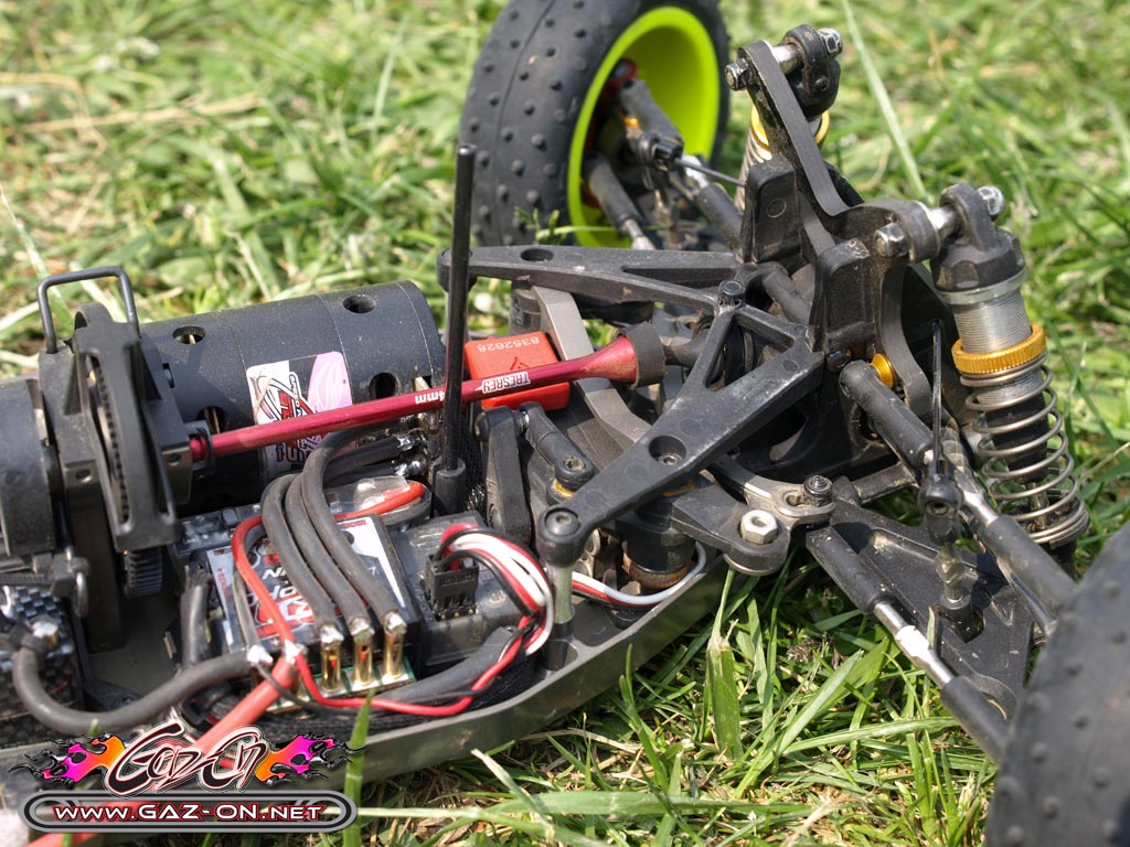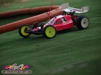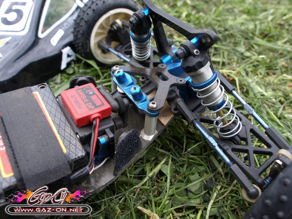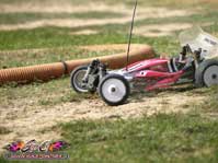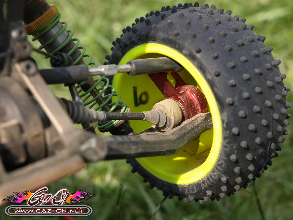 Au final, les pneus herbe Schumacher Mini Spike ont été maintenus et ont très bien fait l’affaire sur cette piste ou s’alternait surface très accrocheuse et glissante.