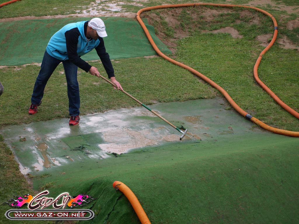 Les organisateurs ont tenté de remettre la piste en état une fois le déluge passé, mais une nouvelle averse est arrivée et la commission des pilote a pris la sage décision d’arrêter la course.