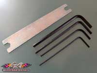 Remplacer les 6 vis avec des têtes 1/12 (4 fixant le support d’amortisseurs et 2 le train avant au châssis) par des 3/32 de même longueur et beaucoup plus facile à démonter