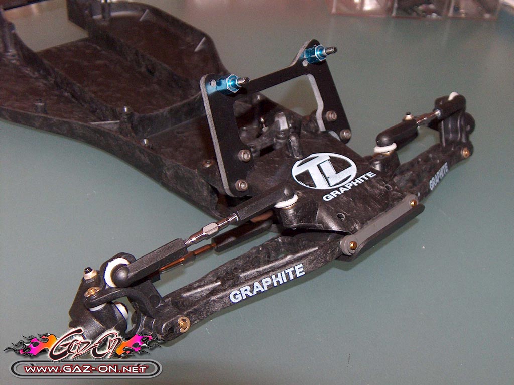 Enfin, j’ai opté pour des supports d’amortisseurs en alu avec pivot plastique car je trouve que l’amortisseur est plus libre dans ces mouvements.