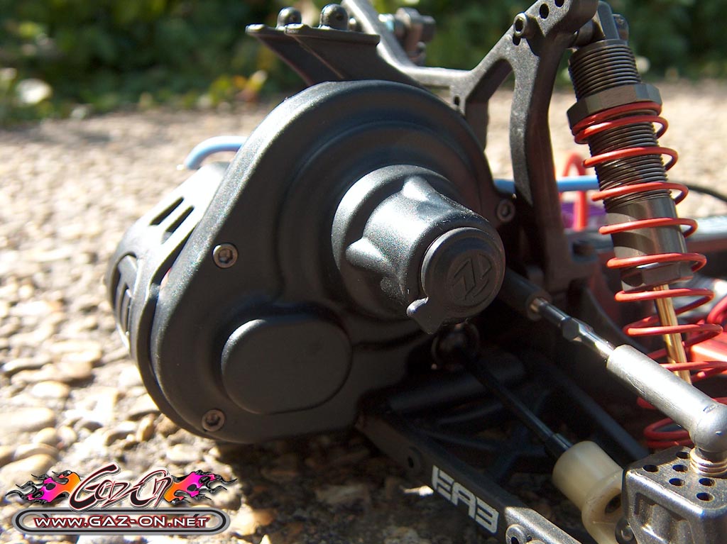 Losi effectue ici un retour en arrière avec l’adoption de la boite de transmission du BK1, côté BK2 seule la plaque en alu subsiste.Les nouveautés se situent :