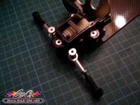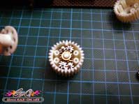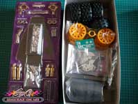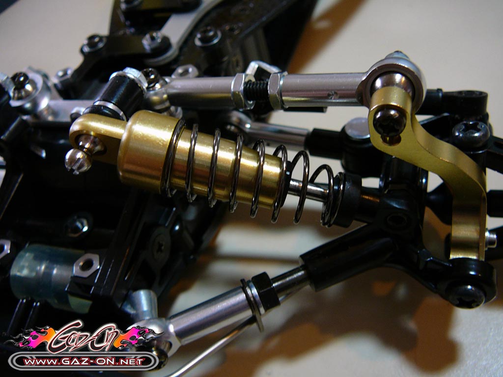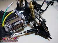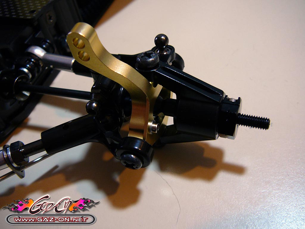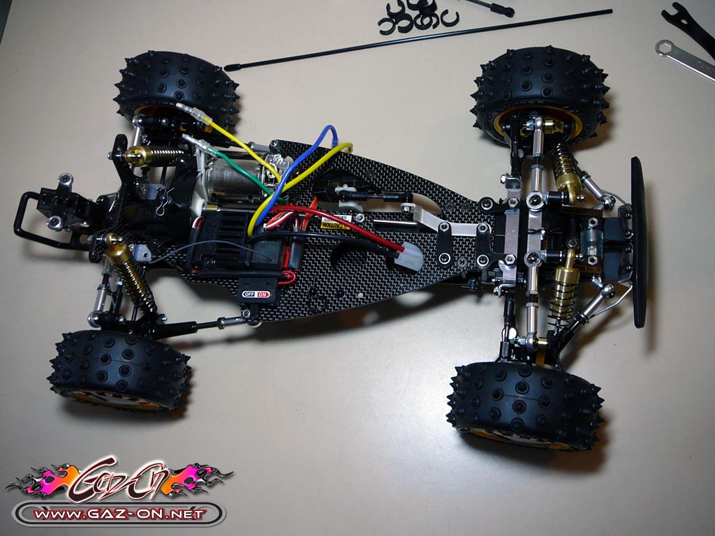 Autre évolution apporté à cette édition 2011, les hexagones d’entraînement des roues sont issus des modèles compétition Touring Tamiya, bien plus résistant que les hexagones sur cannelures de 1988.