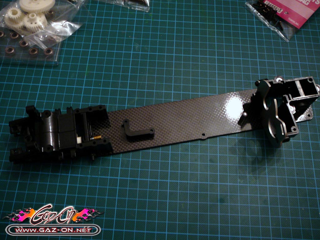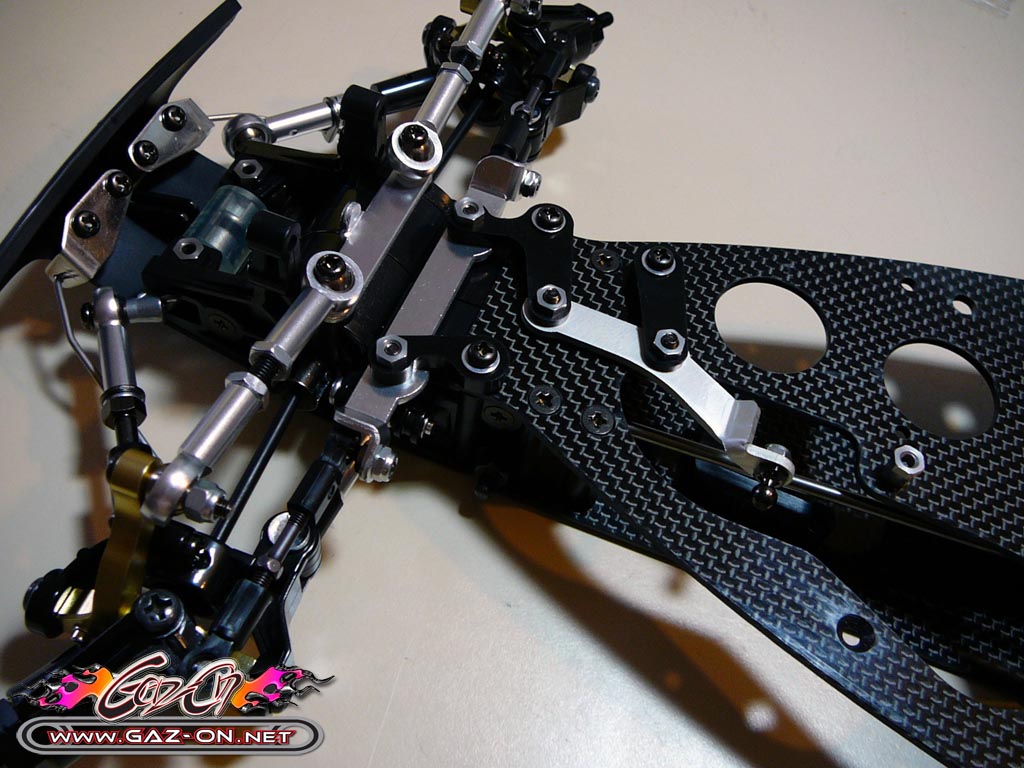 Tamiya l’a réalisé plus épais, en une seule partie et maintenu pas des pièces en aluminium usiné dans la masse.