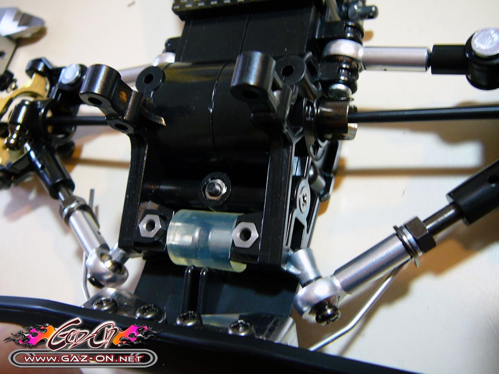 On monte ensuite le moteur sur la transmission arrière :