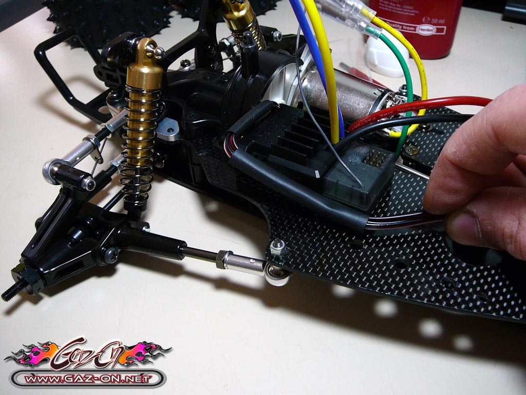 La direction est équipée d’une tringlerie qui permet de reculer le servo contre le moteur.