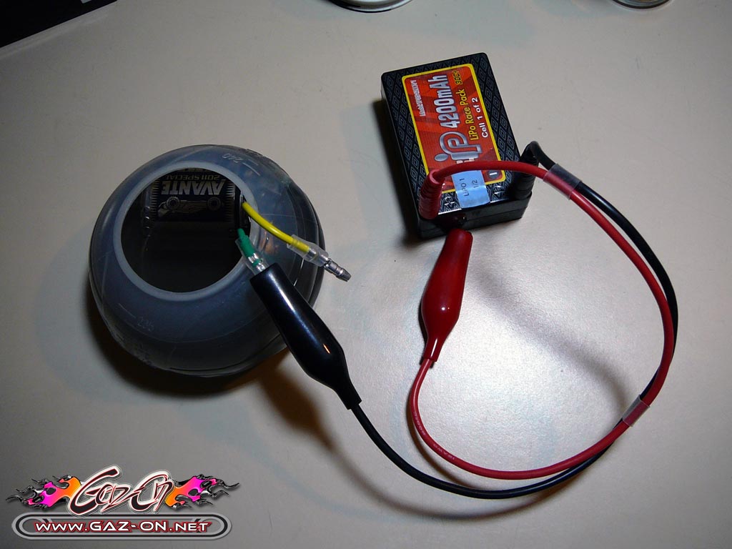 Pour cela, je me suis permis un rodage à l’ancienne, par immersion dans de l’alcool (pour éviter les arc électrique et faciliter le refroidissement). Prenez bien soin d’immerger le moteur totalement pour éviter tout départ d’incendie (étincelle + alcool).