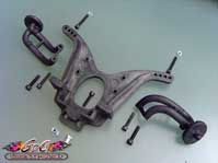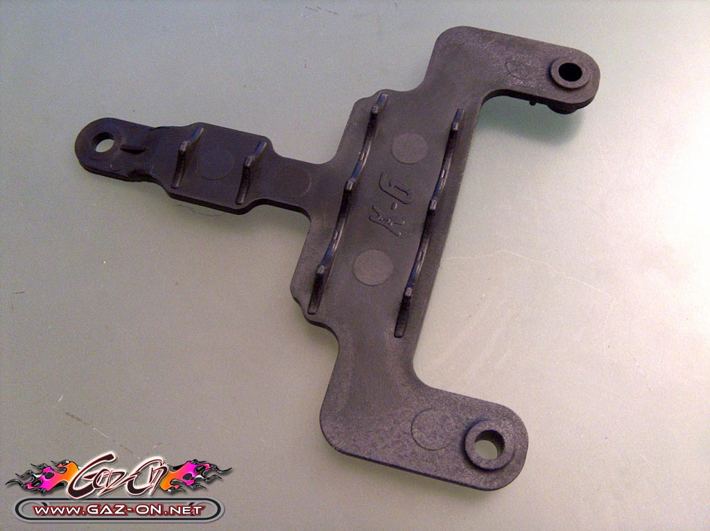 Pièce principale du kit de conversion, le châssis du X-6 est en Graphite moulé et est de type baignoire.La qualité de fabrication apportée à cette pièce est visible à l’œil nu, la couleur et le rendu de la matière sont très proches du graphite utilisé sur les châssis graphite Losi ; au toucher, la matière est lisse, seul quelques légers défauts sont visibles sur la partie arrière, du beau travail pour un poids de 134 grammes.