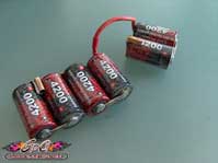 le pack d’accus (en configuration 4+2) en position centrale avant (4 éléments proches du moteur, 2 proches du servo)