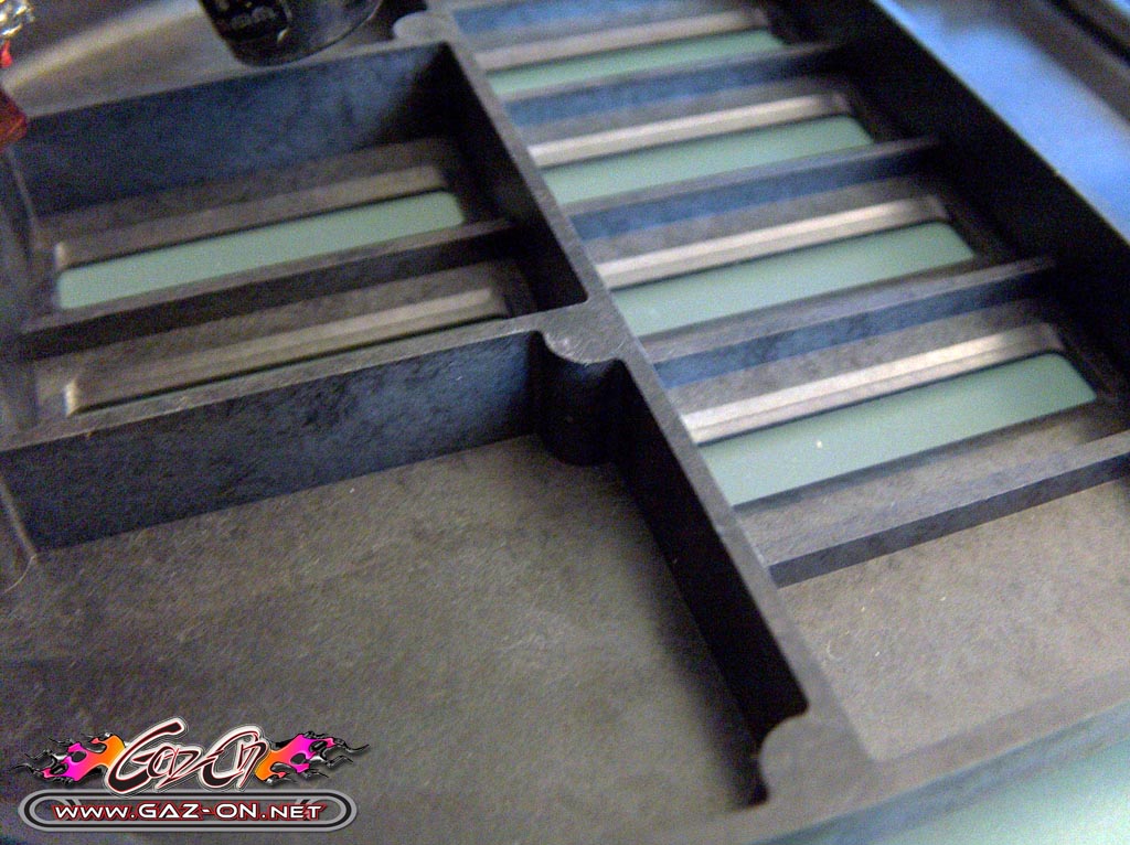 En effet, les éléments extérieurs du pack se trouvent surélevés par rapport aux 4 éléments centraux par l’absence de fraisage dans le châssis à leur emplacement.