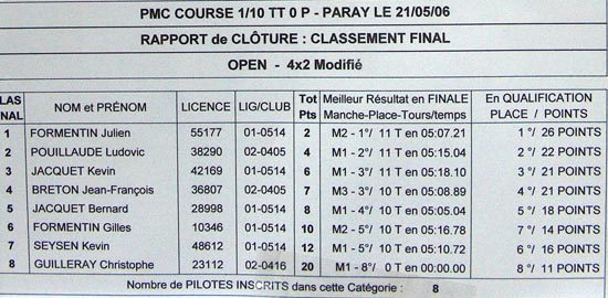 Pôle et victoire pour Julien Formentin devant Ludovic Pouillaude second sur la grille.Le niveau en 4x2 open était moyen, les temps de ceux-ci étaient à peine meilleurs que ceux en 4x2 promo.