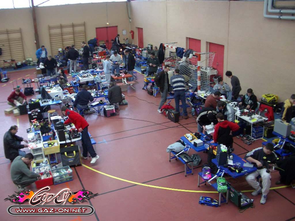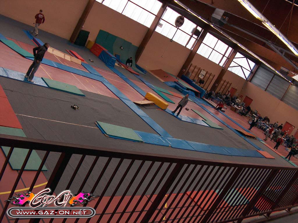 Arrivée vers 8h dans la salle de Hand-ball glacée, la piste était montée et ouverte aux essais.Ceux ci se terminèrent pour 10h, ce qui permit à chacun d’optimiser ses réglages, mais pénalisa gravement le timing.